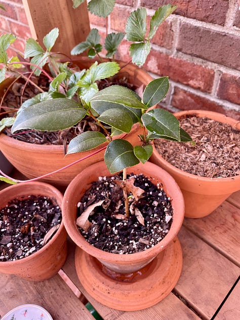 To start native seeds: One of the best ways to start native seeds is to sprinkle them in a pot and then just leave them alone. I shared more about how to do that here. I keep some going on my potting table all the time. They would look like empty pots out in the kitchen garden before the seeds sprout, but here on the table I remember what they are and it doesn’t bother me that they look empty.