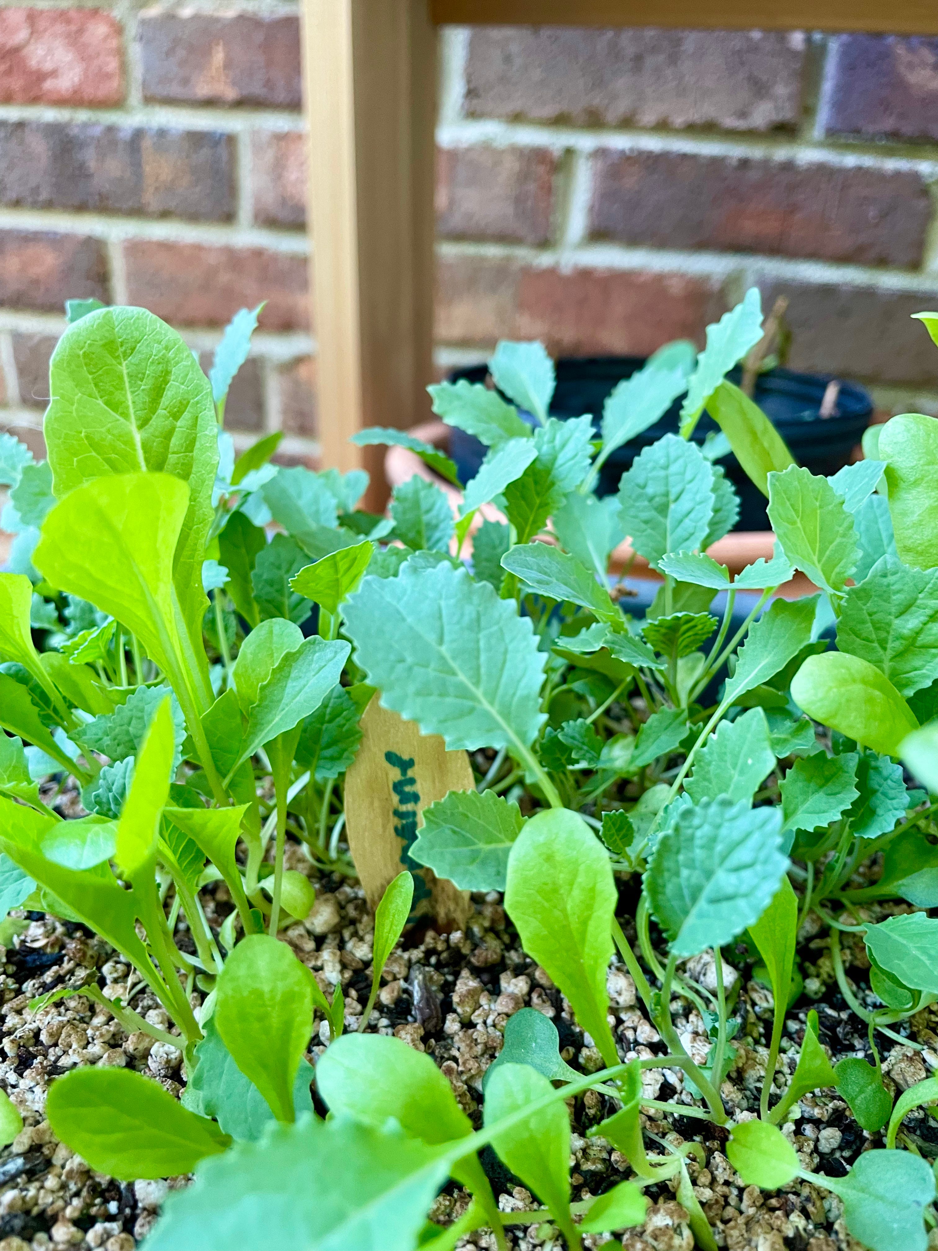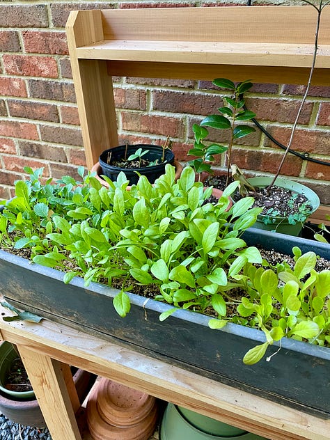 With this, I can wait longer to top-dress the raised beds, and then transplant some of these little guys out there to grow out. But I think I might keep baby greens in this little trough all cool season.